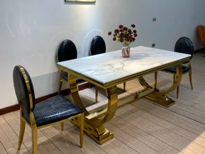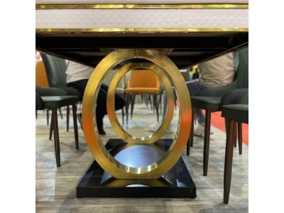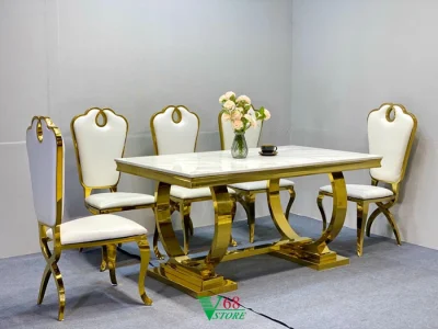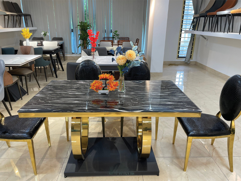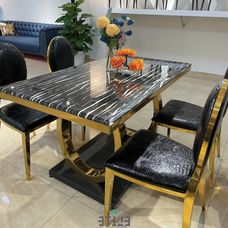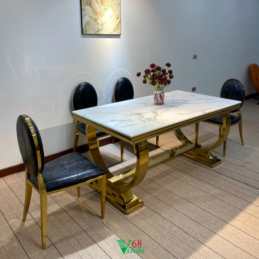 - Bàn ăn mạ PVD mặt đá cẩm thạch