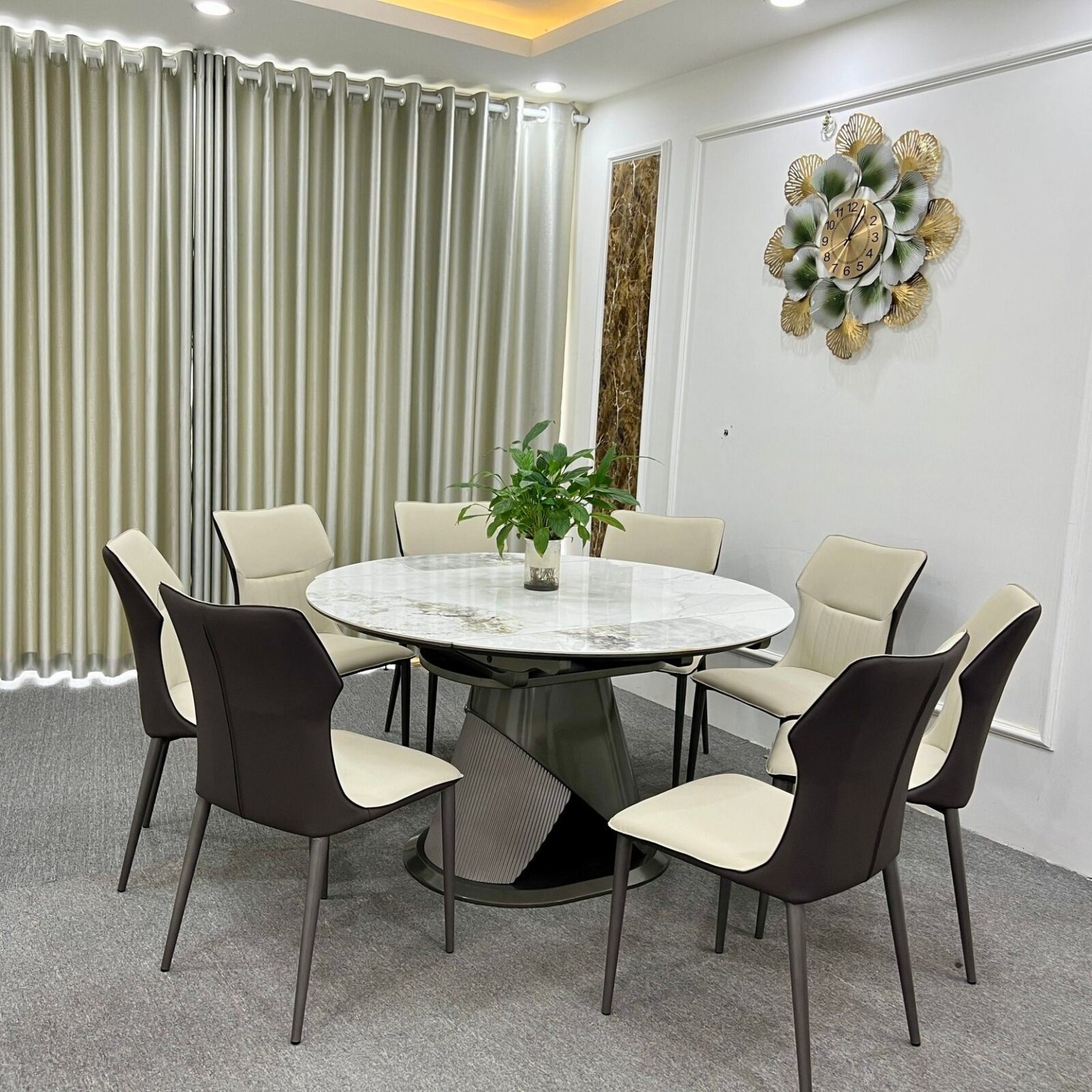 - Bàn tròn D130cm – ngồi được 4-8 ghế.
