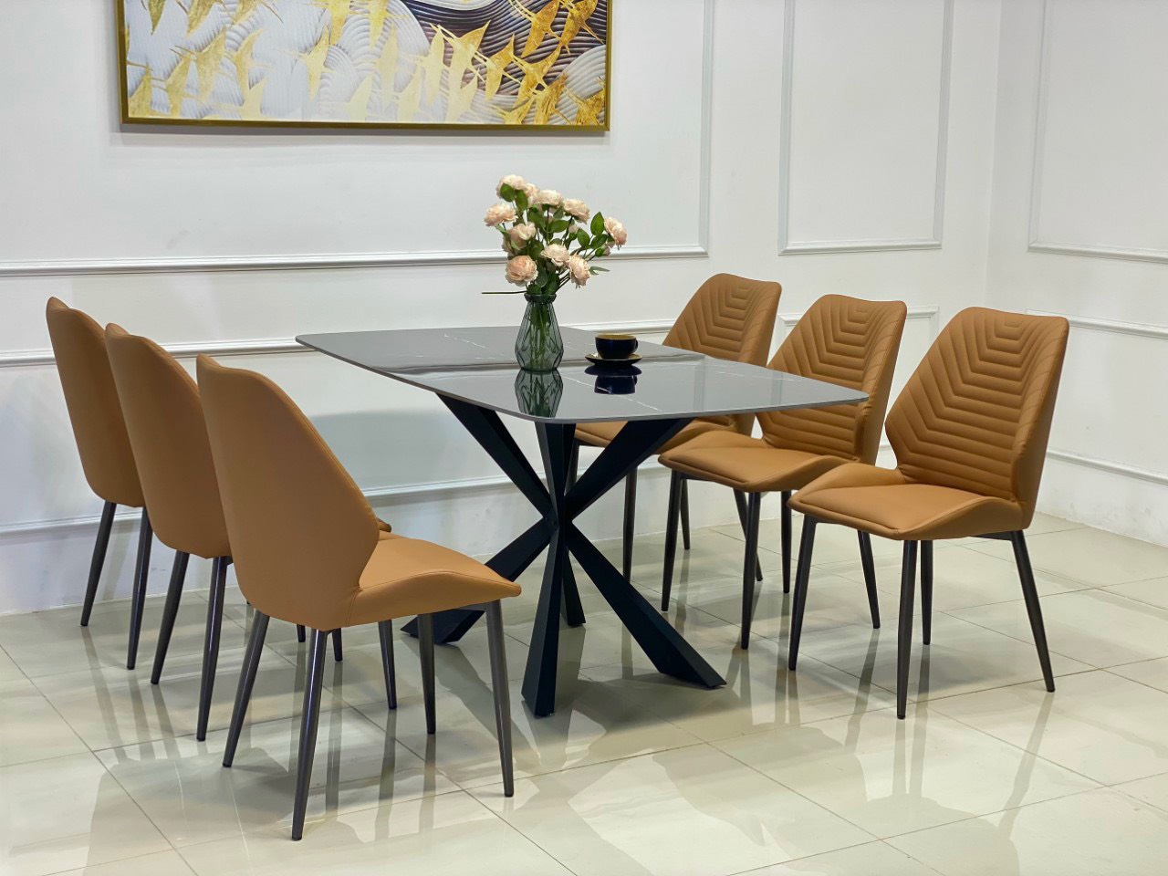Chi tiết bộ bàn ăn nhập khẩu 6 ghế Otis, chân +