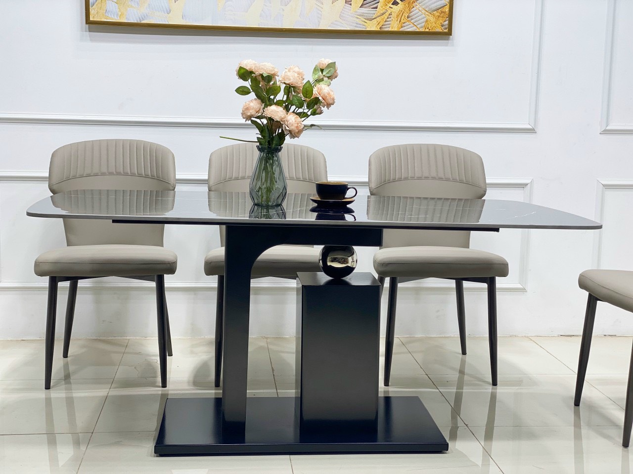 Chi tiết bộ bàn ăn châu âu mặt đá Bạch Ngọc BA06