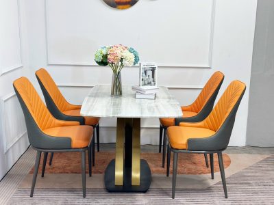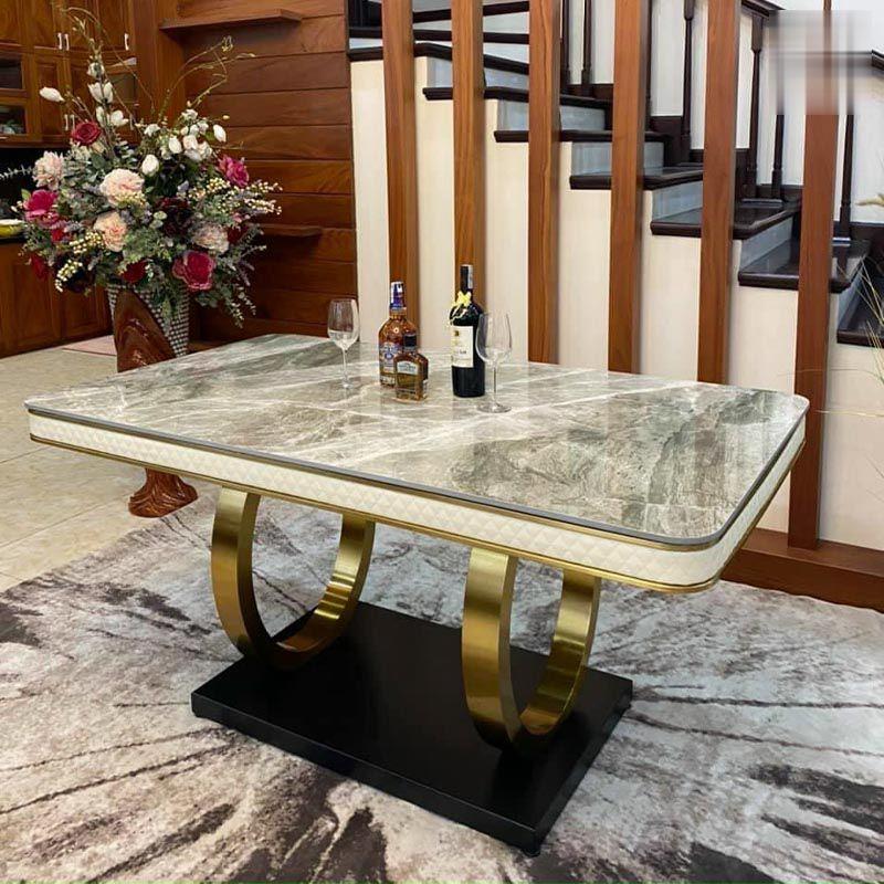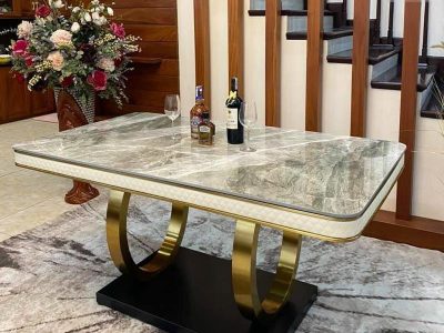Kích thước, chất liệu của bộ bàn ăn mạ PVD nhập khẩu hiện đại: