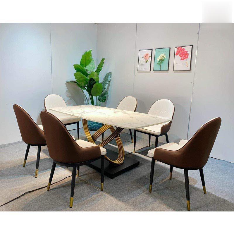 Kích thước, chất liệu của bộ bàn ăn nhập khẩu mặt đá chân mạ PVD hiện đại: