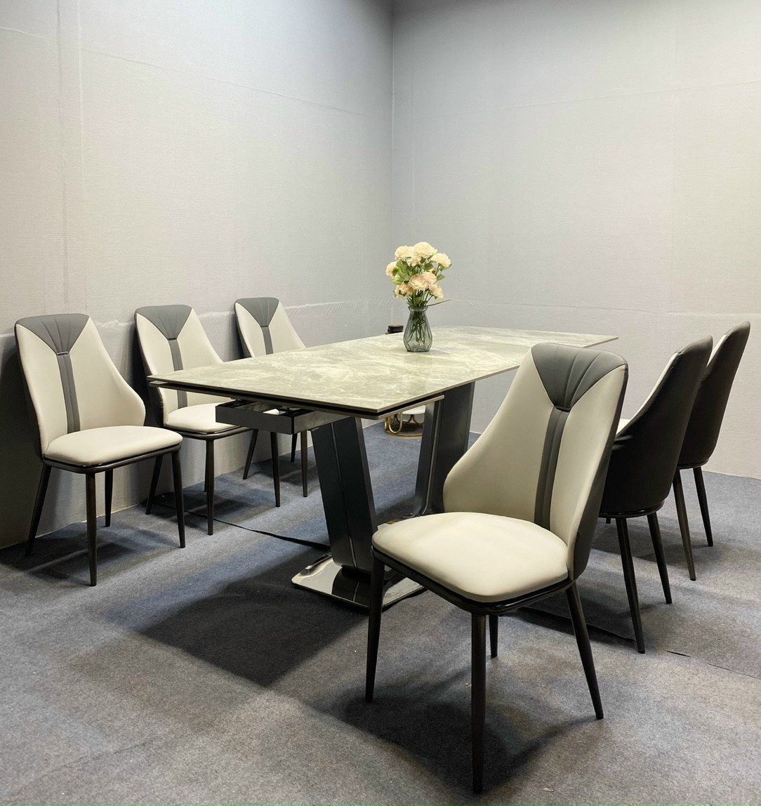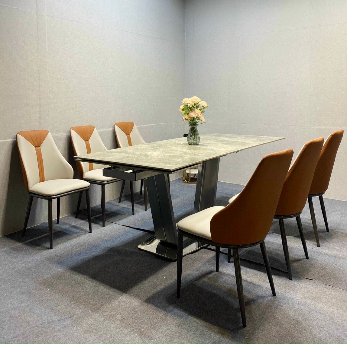 - Bàn ăn thông minh kéo dài chân U mặt đá Ceramic chống trầy, chống cháy, chống nứt, chống nước (độ bền cứng hơn thép 3-4 lần).
