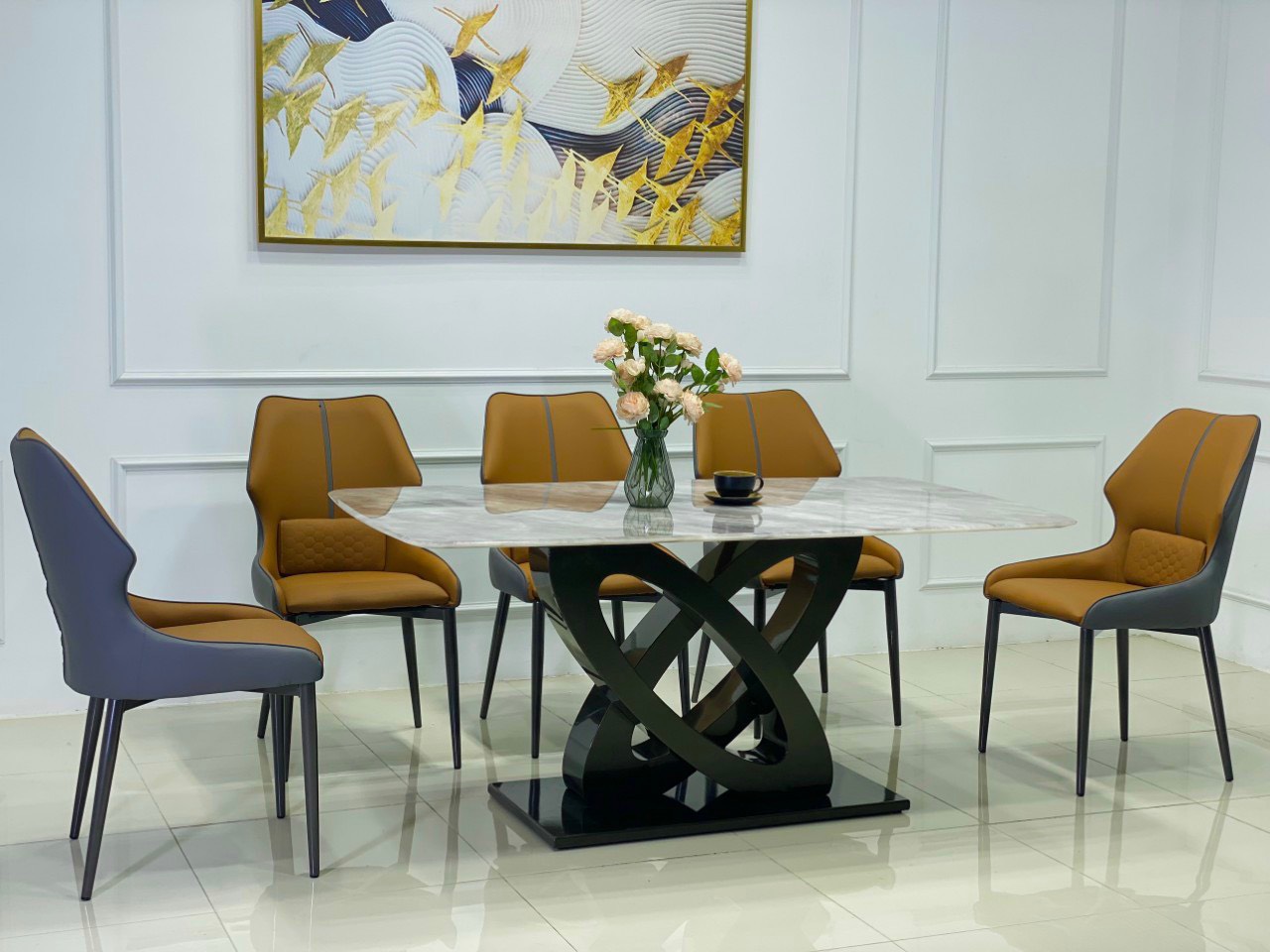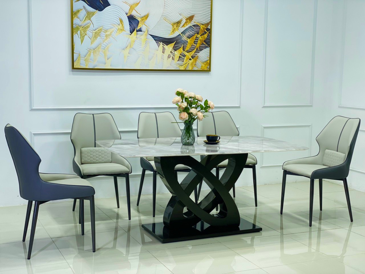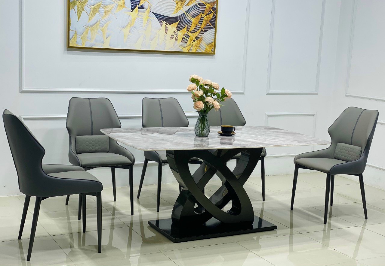 Chi tiết bộ bàn ăn nhập khẩu cao cấp mặt đá Bạch Ngọc Chân Bướm