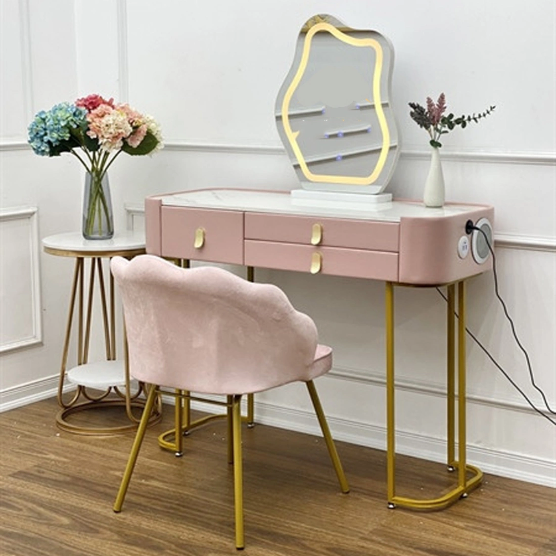 Bàn trang điểm nhập khẩu được sử dụng chất liệu là gỗ công nghiệp kết hợp cùng chân sắt sơn tĩnh điện cao cấp tạo nên vẻ đẹp sang trọng, hoàn mỹ cho không gian phòng ngủ. Gỗ công nghiệp bền, đẹp, an toàn với sức khỏe người dùng, giá thành hợp lý nên gỗ công nghiệp ngày càng được nhiều người lựa chọn thay cho gỗ tự nhiên. Mẫu bàn trang điểm BP029 có 3 màu sắc tùy chọn cho quý khách là màu trắng, màu hồng & màu ghi phù hợp nội thất nhiều phong cách thiết kế khác nhau.
