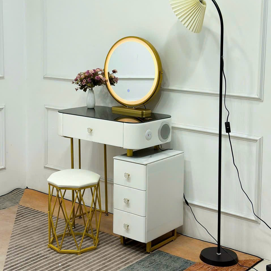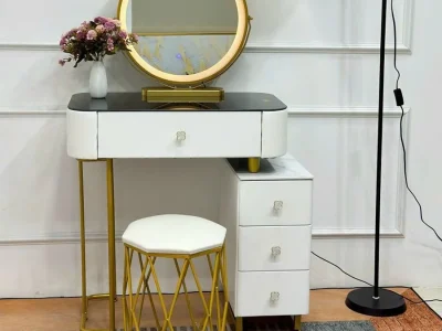 Bàn trang điểm ngồi bệt với thiết kế dạng bệt, được bổ sung thêm ngăn kéo giúp bạn có thêm những lựa chọn để sắp xếp không gian ngăn nắp, gọn gàng.