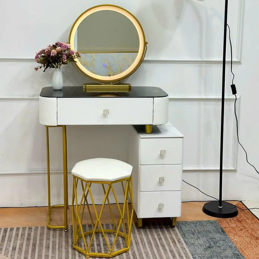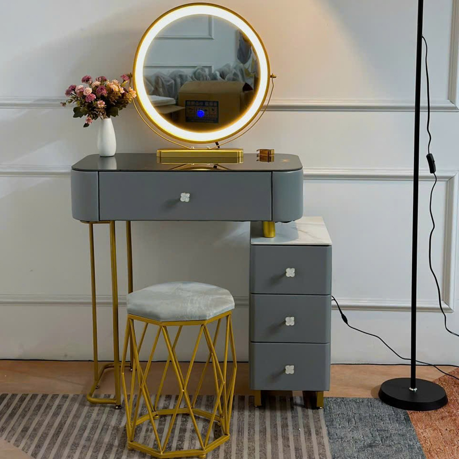 Bàn trang điểm được tích hợp thêm hệ thống đèn led xung quanh gương của mẫu thiết kế này sẽ bổ sung thêm nguồn sáng đầy đủ nhất cho bạn dễ dàng thao tác.