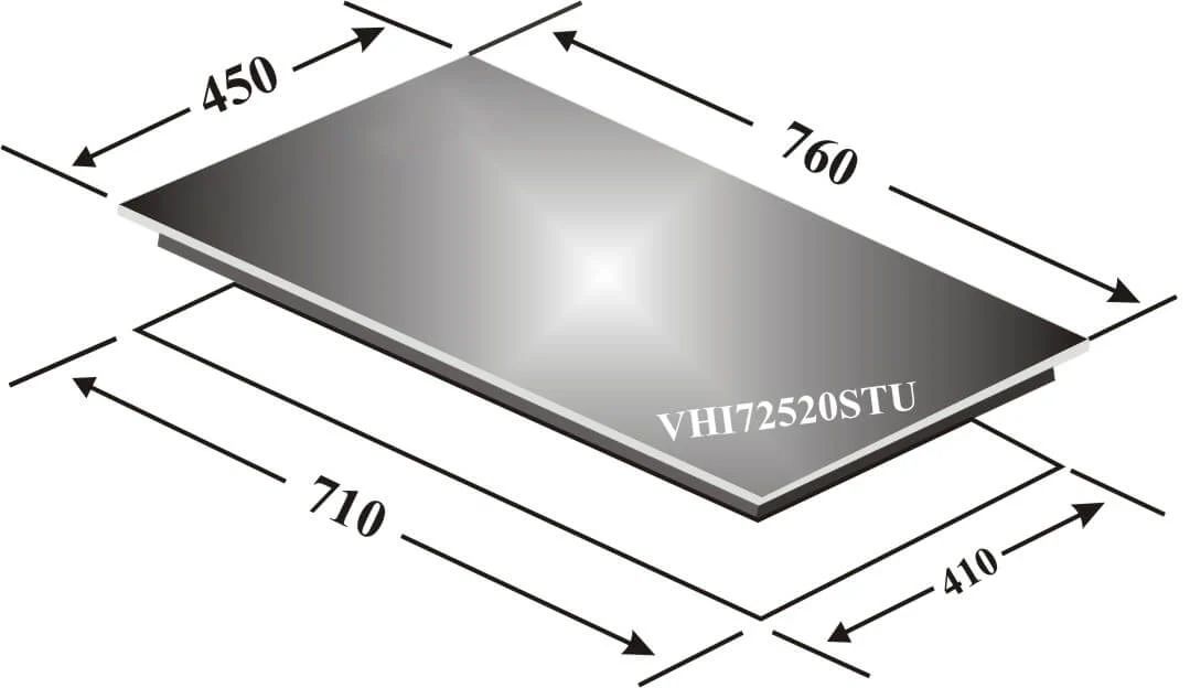 Bếp từ VHI72520STU được thiết kế 2 vùng nấu có công suất như sau
