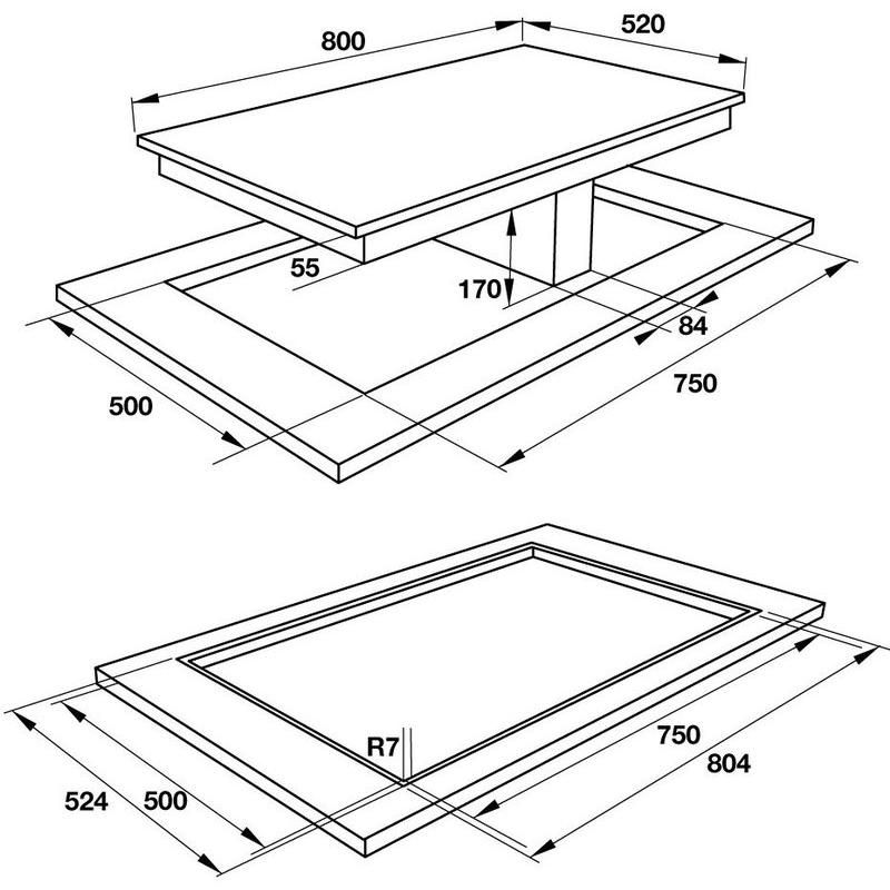 - Có thể kết hợp hai vùng nấu từ bên phải thành một vùng từ lớn 220 x390mm 2.2/3.5KW