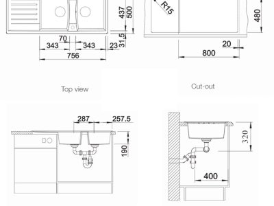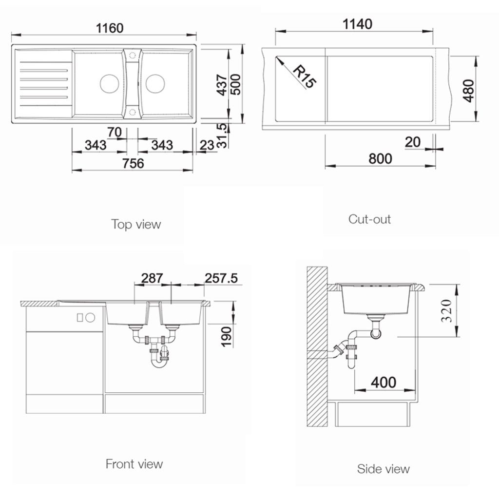 - Kích thước của chậu đá Blanco Lexa 8S Alu metallic
