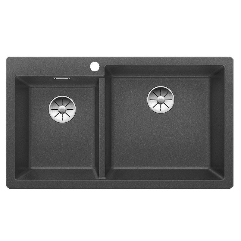 - Dạng chậu Blanco Pleon 9 rock grey là dạng chậu hai hố lệch 1 to 1 nhỏ