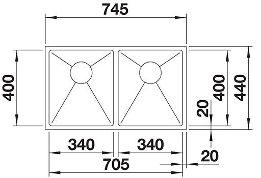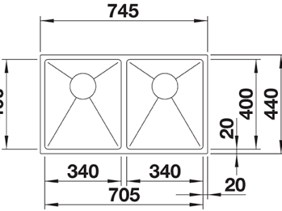 Kích thước của chậu rửa bát Blanco Quatrus R15 435/285-IU