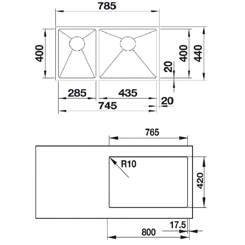 Thông số kỹ thuật chậu inox Blanco Quatrus R15