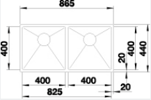 Kích thước của chậu rửa bát Blanco Quatrus R15 400/400-IU