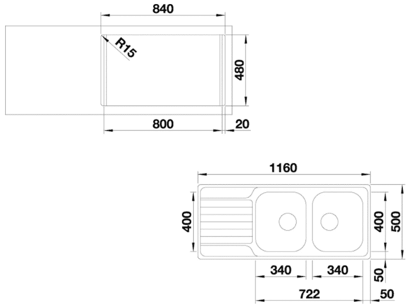 - Kích thước mỗi bồn (D x R): 340 x 400 mm.