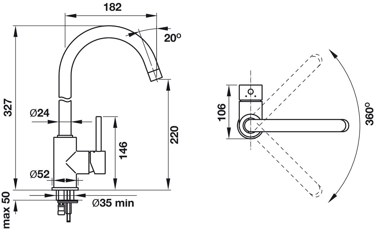 - Áp lực nước đầu ra lớn dễ dàng làm đầy bồn rửa và bình chứa