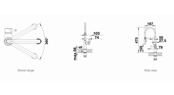 Kích thước của vòi rửa bát Blanco Catris-s Flexo 525793: