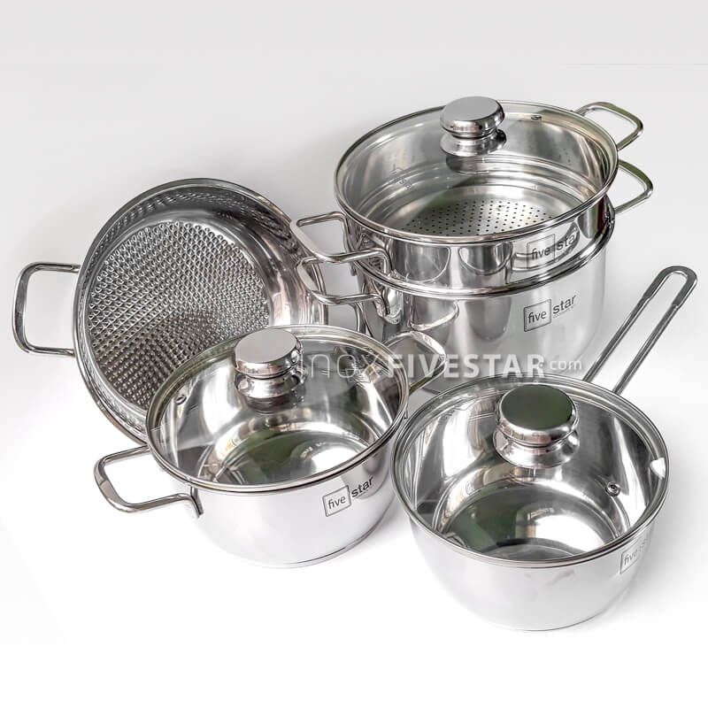 Đặc điểm bộ nồi Fivestar 5 chiếc vung kính