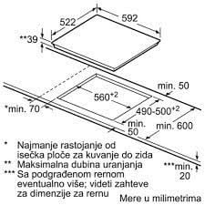 Vùng nấu bên trái: 1 x Ø 210/ 275 mm, 2.0/ 2.7 KW
