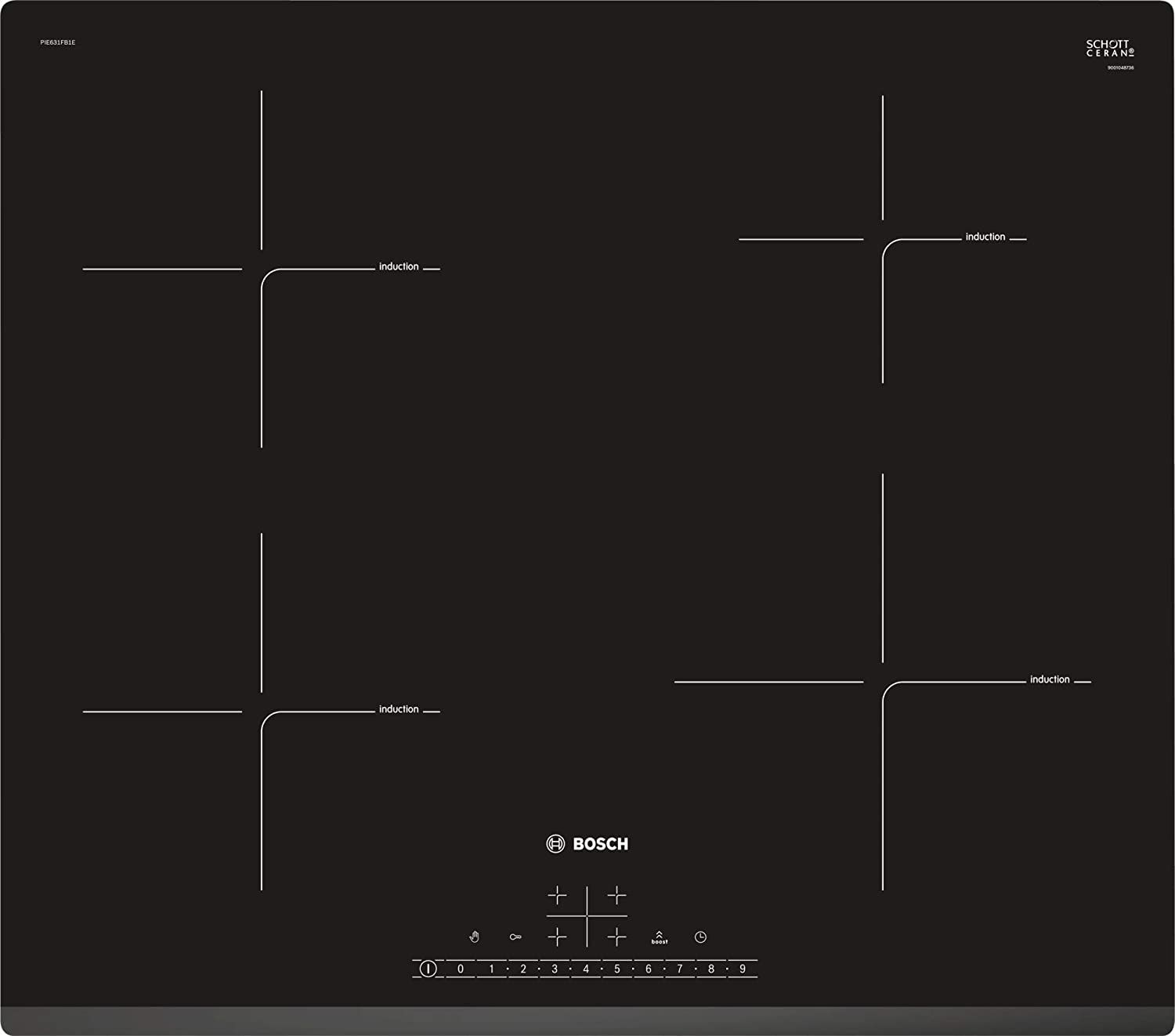 - Bếp Bosch PIE631FB1E được thiết kế 4 vùng nấu từ