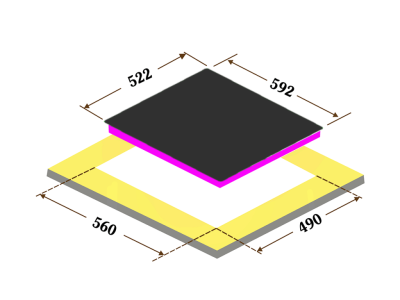 - Kích thước hộc bếp: 560-562R x 490-502S x 59C mm