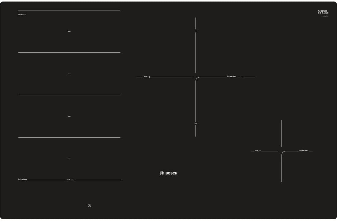 - Vùng nấu của bếp từ Bosch PXE801DC1E
