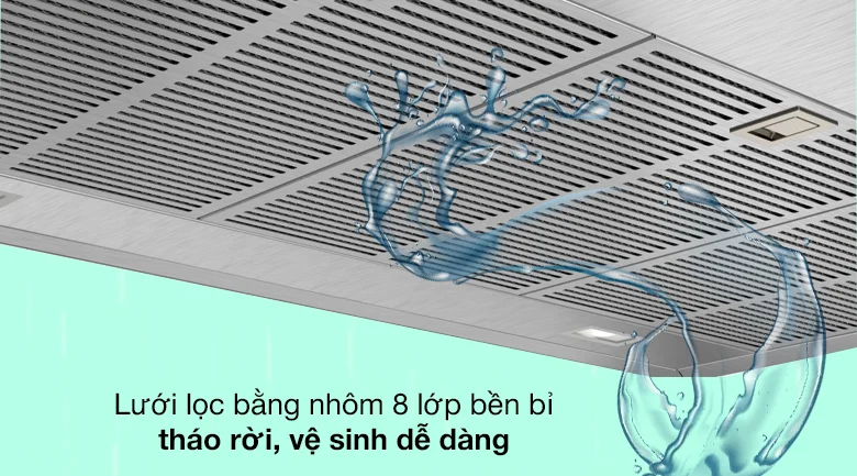 - Mức lọc dầu mỡ: lọc hơn 85% dầu mỡ từ không khí nhà bếp