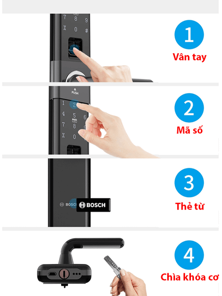 Vân tay, thẻ, mật khẩu, chìa cơ