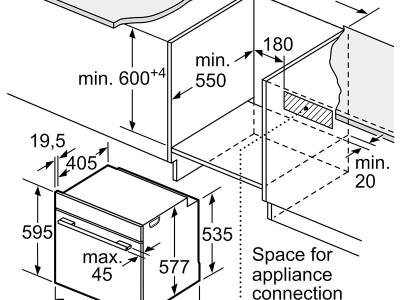Kích thước lắp đặt (HxWxD): 585 mm – 595 mm x 560 mm – 568 mm x 550 mm