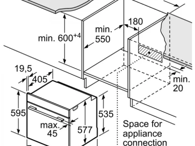 - Kích thước lắp đặt (Cao x Rộng x Sâu): 585 mm – 595 mm x 560 mm – 568 mm x 550 mm