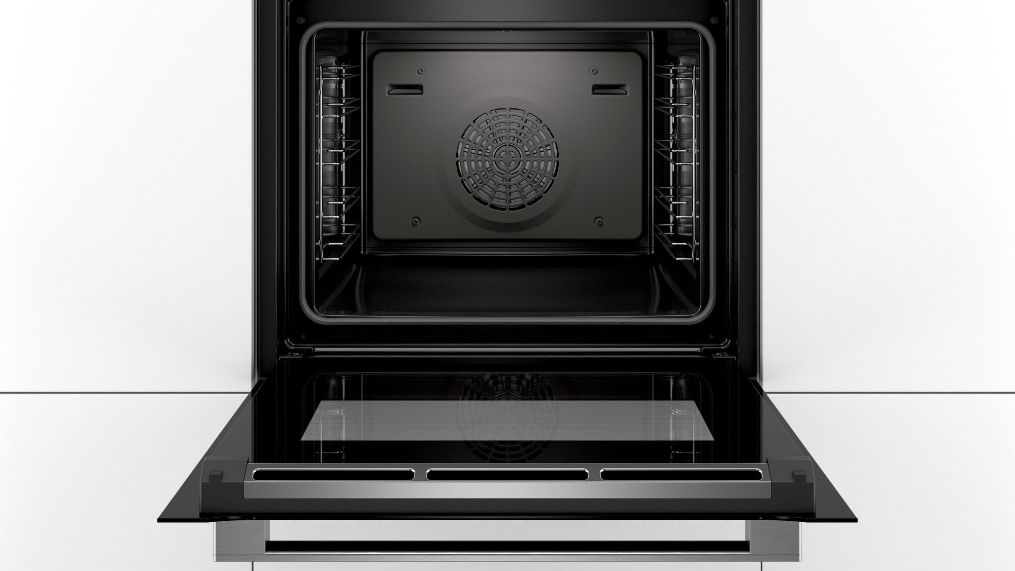 - Cửa lò Lò nướng BOSCH HBG633NB1|Serie 8 với chức năng giảm chấn SoftClose/ SoftOpening giúp cho việc đóng mở cửa lò nhẹ nhàng và không gây ra tiếng ồn. Khi mở cửa lò một bản lề được thiết kế đặc biệt trước khi đến vị trí cuối cùng vài centimet rồi từ từ đóng lại. Giải pháp này giúp cải thiện chất lượng sử dụng của thiết bị.