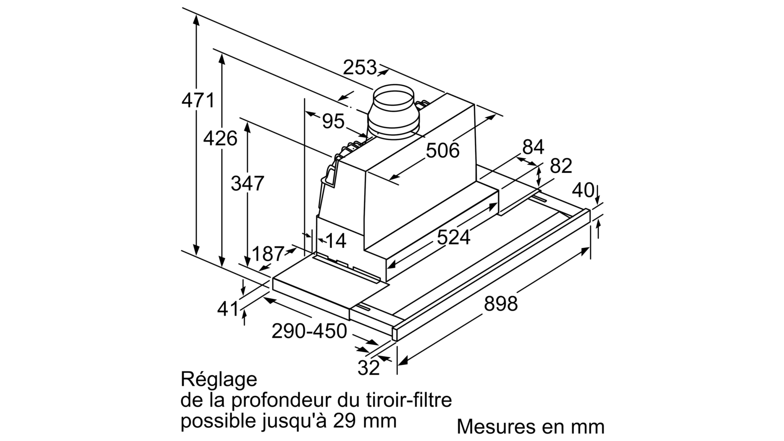 Công suất hút theo tiêu chuẩn DIN / EN 61591: Thông thường: 395 m³ / h, Tăng cường: 700 m³ / h.