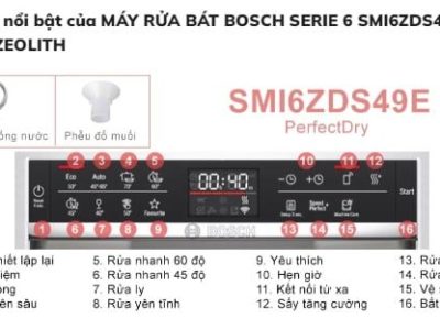 | Thông số kỹ thuật chi tiết MÁY RỬA BÁT BOSCH SERIE 6 SMI6ZDS49E BÁN ÂM SẤY ZEOLITH | |