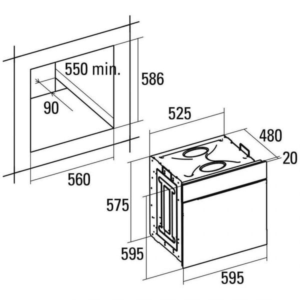 - Kích thước lắp âm tủ : 560 x 586 x 550 (mm)