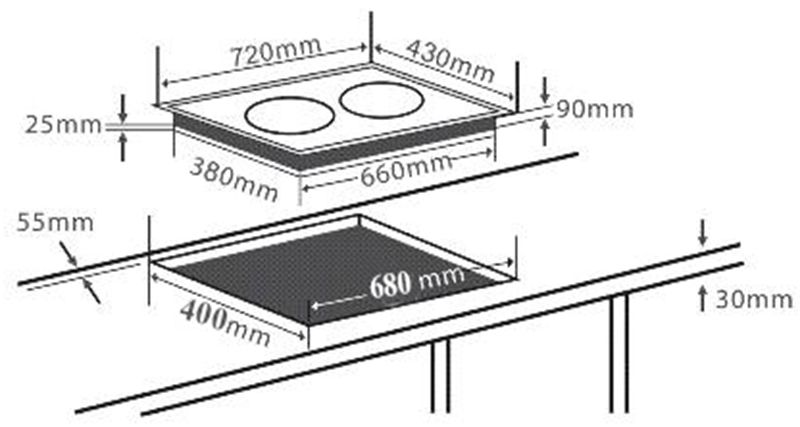 Đây là mặt kính chuyên dụng dành cho bếp điện từ, là một loại kính có chất lượng cao, rất cứng, bền và có nhiều đặc điểm nổi trội như: khả năng chịu nhiệt, khả năng chống trầy xước và chống va đập …. Mặt kính gồm các thấu kính hội tụ, truyền nhiệt từ bếp lên đáy nồi theo phương thẳng đứng, không thất thoát nhiệt ra môi trường. Mặt kính màu xám liền nguyên khối, an toàn, thẩm mỹ và tiện trong việc vệ sinh, lau chùi.