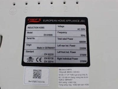 * Tự động chia sẻ công suất ( Power management) giữa 3 bếp , max 6800W.