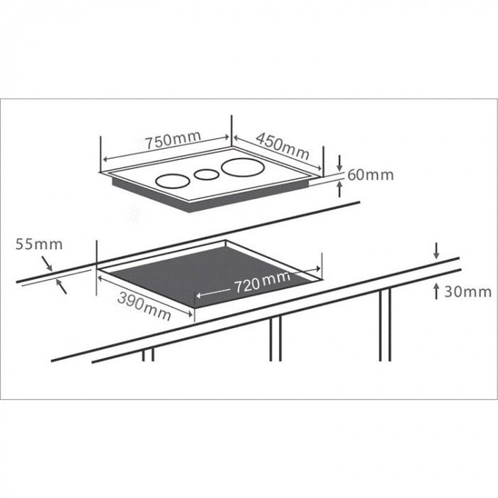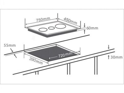 Kích thước khoét lỗ: W720 x D390 (mm)
