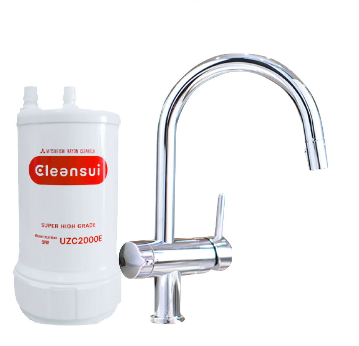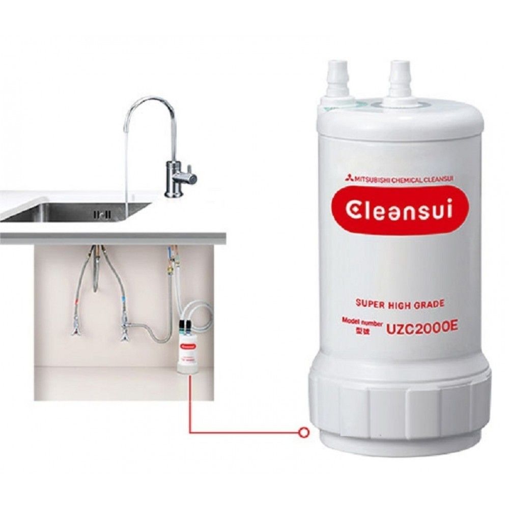 - Nước từ bên ngoài phải đưa qua 4 lớp lọc, nhưng tốc độ lọc nước vẫn rất nhanh và hiệu quả, với công suất lọc khoảng 3l/phút. Bộ lọc Cleansui UZC2000E cần phải được thay sau 1 năm sử dụng hoặc 8000 lít, để đạt được hiệu quả sử dụng tốt nhất, chú ý trên bảng điều khiển của thân vòi sẽ có đèn và chuông báo hiệu đến thời gian cần phải thay thế bộ lọc.