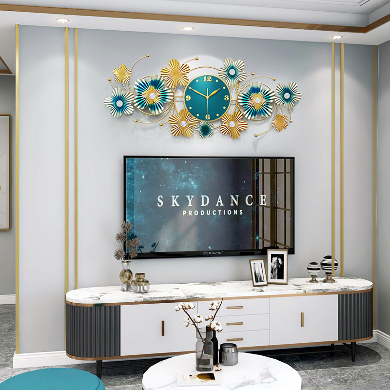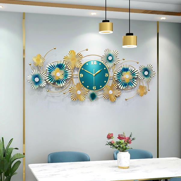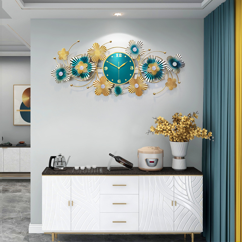 Đồng hồ treo tường nghệ thuật trang trí Decor hoa xanh sang trọng TK90 được thiết kế với tông màu vàng gold tạo nên sự sang trọng cho ngôi nhà. Các chi tiết được chế tác sắc nét với chất liệu sắt phun sơn tĩnh điện chống rỉ sét có độ bền màu cao tạo nên một chiếc đồng hồ sang trọng v à đẹp mắt. Sản phẩm sử dụng động cơ kim trôi chạy êm, không gây ồn khi sử dụng.