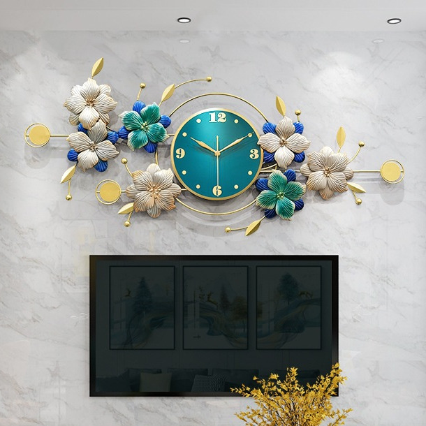 Đồng hồ treo tường nghệ thuật trang trí Decor hoa xanh sang trọng TK91 được thiết kế với tông màu vàng gold tạo nên sự sang trọng cho ngôi nhà. Các chi tiết được chế tác sắc nét với chất liệu sắt phun sơn tĩnh điện chống rỉ sét có độ bền màu cao tạo nên một chiếc đồng hồ sang trọng v à đẹp mắt. Sản phẩm sử dụng động cơ kim trôi chạy êm, không gây ồn khi sử dụng.