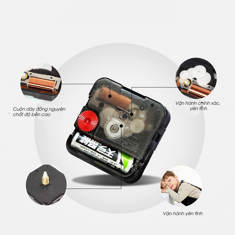 - Hoạt động êm ái: Đồng hồ sử dụng động cơ kim trôi, không gây tiếng ồn khi sử dụng, mang đến sự yên tĩnh cho không gian của bạn.