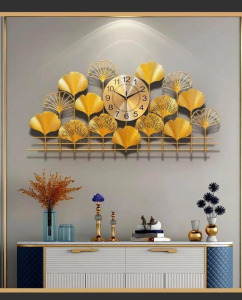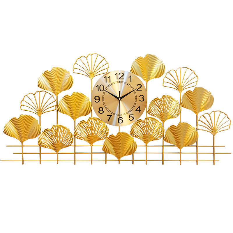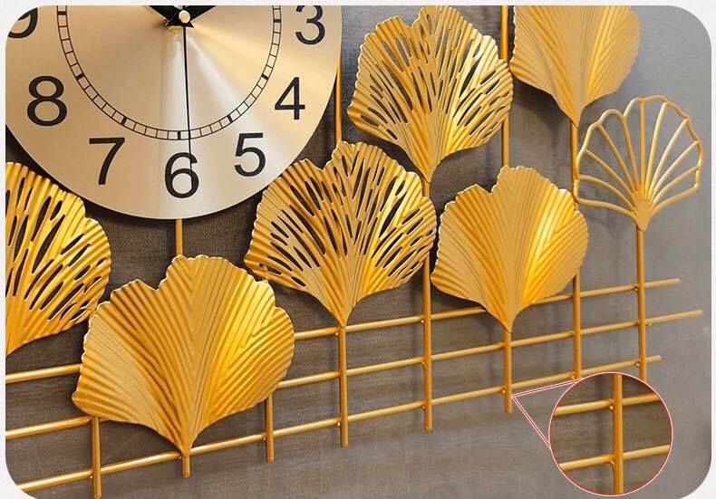 Đồng Hồ Treo Tường Trang Trí Decor hình lá Ginko TK124 được thiết kế với tông màu vàng gold tạo nên sự sang trọng cho ngôi nhà. Các chi tiết được chế tác sắc nét với chất liệu sắt phun sơn tĩnh điện chống rỉ sét có độ bền màu cao tạo nên một chiếc đồng hồ sang trọng v à đẹp mắt. Sản phẩm sử dụng động cơ kim trôi chạy êm, không gây ồn khi sử dụng.