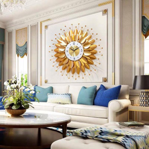 Đồng Hồ Treo Tường Trang Trí TK85 được thiết kế với tông màu vàng gold tạo nên sự sang trọng cho ngôi nhà. Các chi tiết được chế tác sắc nét với chất liệu sắt phun sơn tĩnh điện chống rỉ sét có độ bền màu cao tạo nên một chiếc đồng hồ sang trọng và đẹp mắt. Sản phẩm sử dụng động cơ kim trôi chạy êm, không gây ồn khi sử dụng.