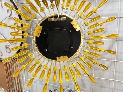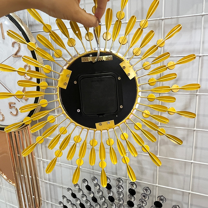 Đồng Hồ Treo Tường Trang Trí Decor mặt trời TK120 được thiết kế với tông màu vàng gold tạo nên sự sang trọng cho ngôi nhà. Các chi tiết được chế tác sắc nét với chất liệu sắt phun sơn tĩnh điện chống rỉ sét có độ bền màu cao tạo nên một chiếc đồng hồ sang trọng v à đẹp mắt. Sản phẩm sử dụng động cơ kim trôi chạy êm, không gây ồn khi sử dụng.