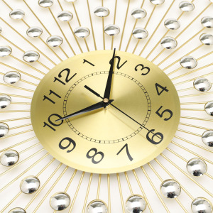Đồng Hồ Treo Tường Trang Trí Decor Ngọc Trai TK110 được thiết kế với tông màu vàng gold tạo nên sự sang trọng cho ngôi nhà. Các chi tiết được chế tác sắc nét với chất liệu sắt phun sơn tĩnh điện chống rỉ sét có độ bền màu cao tạo nên một chiếc đồng hồ sang trọng v à đẹp mắt. Sản phẩm sử dụng động cơ kim trôi chạy êm, không gây ồn khi sử dụng.