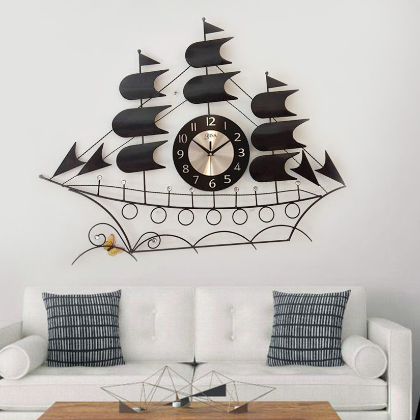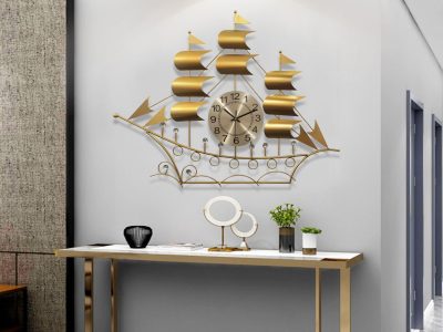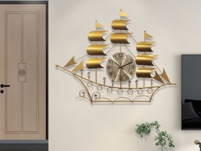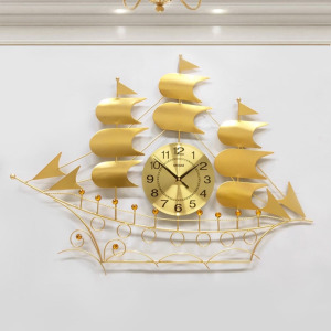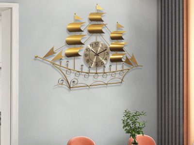 Đồng Hồ Treo Tường Trang Trí Decor Thuyền Buồm TK118 được thiết kế với tông màu vàng gold tạo nên sự sang trọng cho ngôi nhà. Các chi tiết được chế tác sắc nét với chất liệu sắt phun sơn tĩnh điện chống rỉ sét có độ bền màu cao tạo nên một chiếc đồng hồ sang trọng v à đẹp mắt. Sản phẩm sử dụng động cơ kim trôi chạy êm, không gây ồn khi sử dụng.