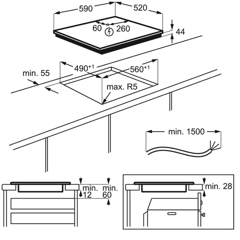 - Công suất bếp – Phía trước bên phải 1800/2800/3500/5200 W