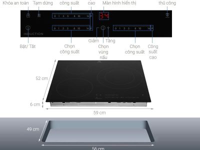 - Công suất bếp – Phía trước bên trái 2300/2700 W