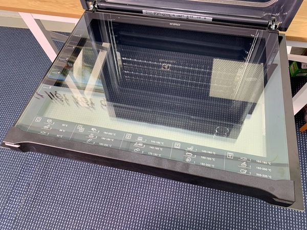 Không còn phải cố gắng cọ rửa những nơi khó tiếp cận của lò nướng nữa. Chỉ cần ấn nhẹ vào bản lề cửa, toàn bộ khung cửa có thể được tháo ra bằng cách trượt nhẹ khỏi bản lề. Sau khi tháo, các tấm kính có thể tách rời khỏi khung, để bạn dễ dàng vệ sinh toàn bộ bề mặt cửa.