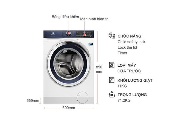 Chiếc máy giặt sấy Electrolux này sẽ là một trợ thủ đắc lực cho việc giặt giũ quần áo của những gia đình nhờ vào khả năng có thể giặt khối lượng quần áo đến 11kg, cùng với đó là khối lượng sấy lên đến 7kg phù hợp cho gia đình đông trên 7 người.